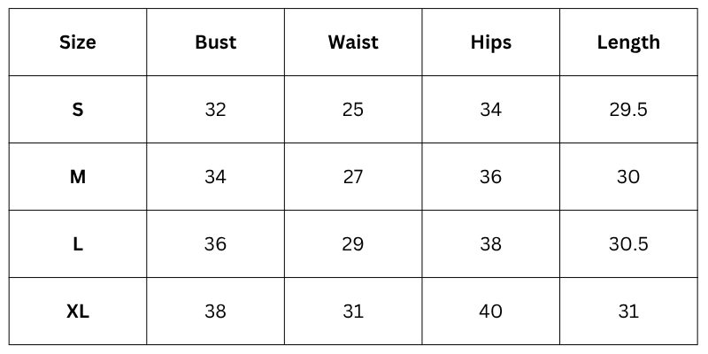 Size Chart (Inches):