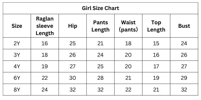 Size Chart (Inches):