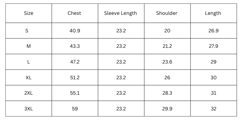 Size Chart(inches):