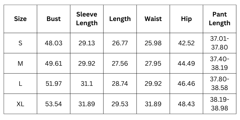 Size Chart (Inches):