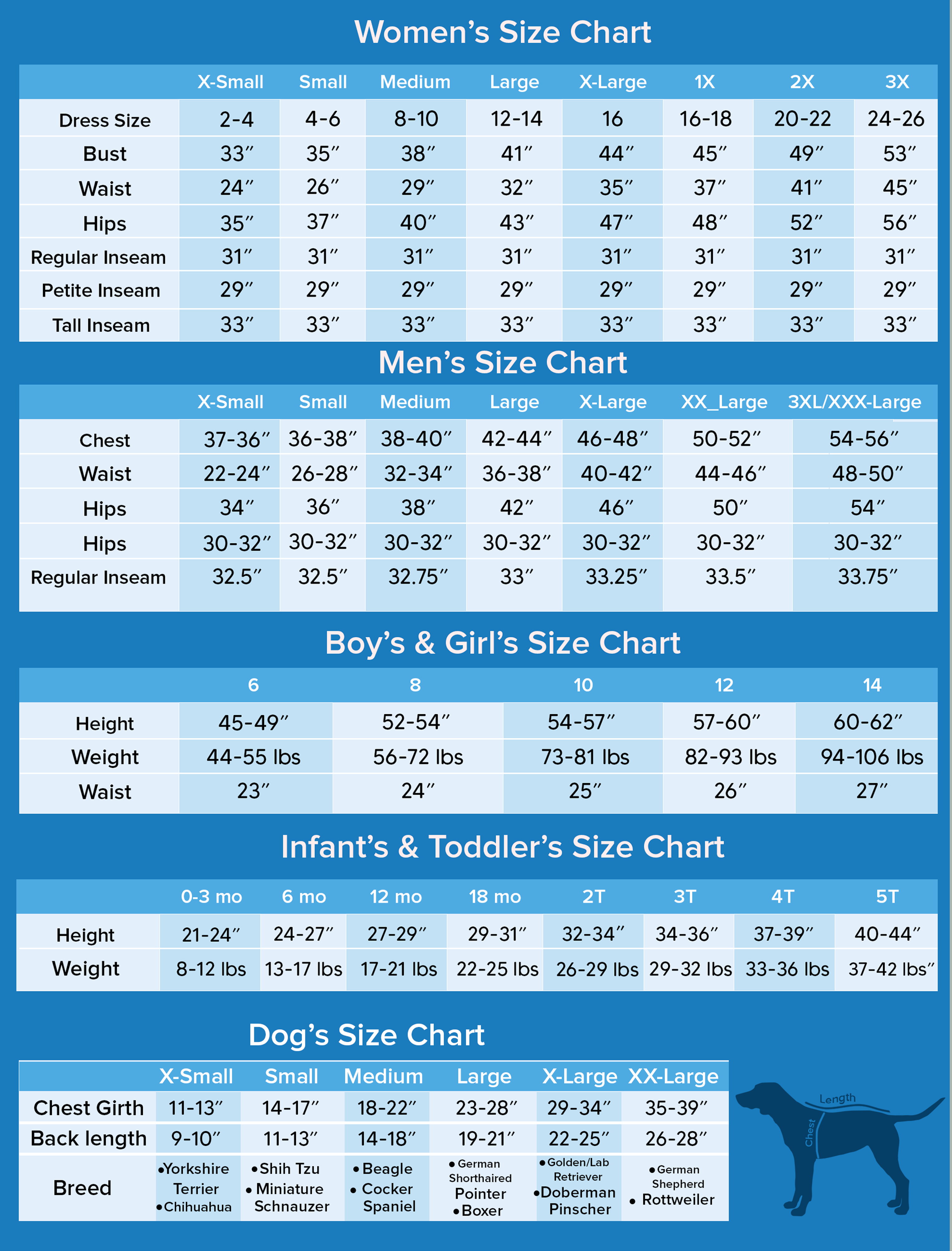 Comfortable, relaxed fit. Check our size chart for the perfect fit for every family member.