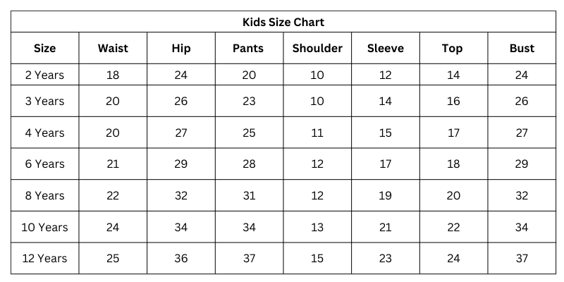 Size Chart(inches):