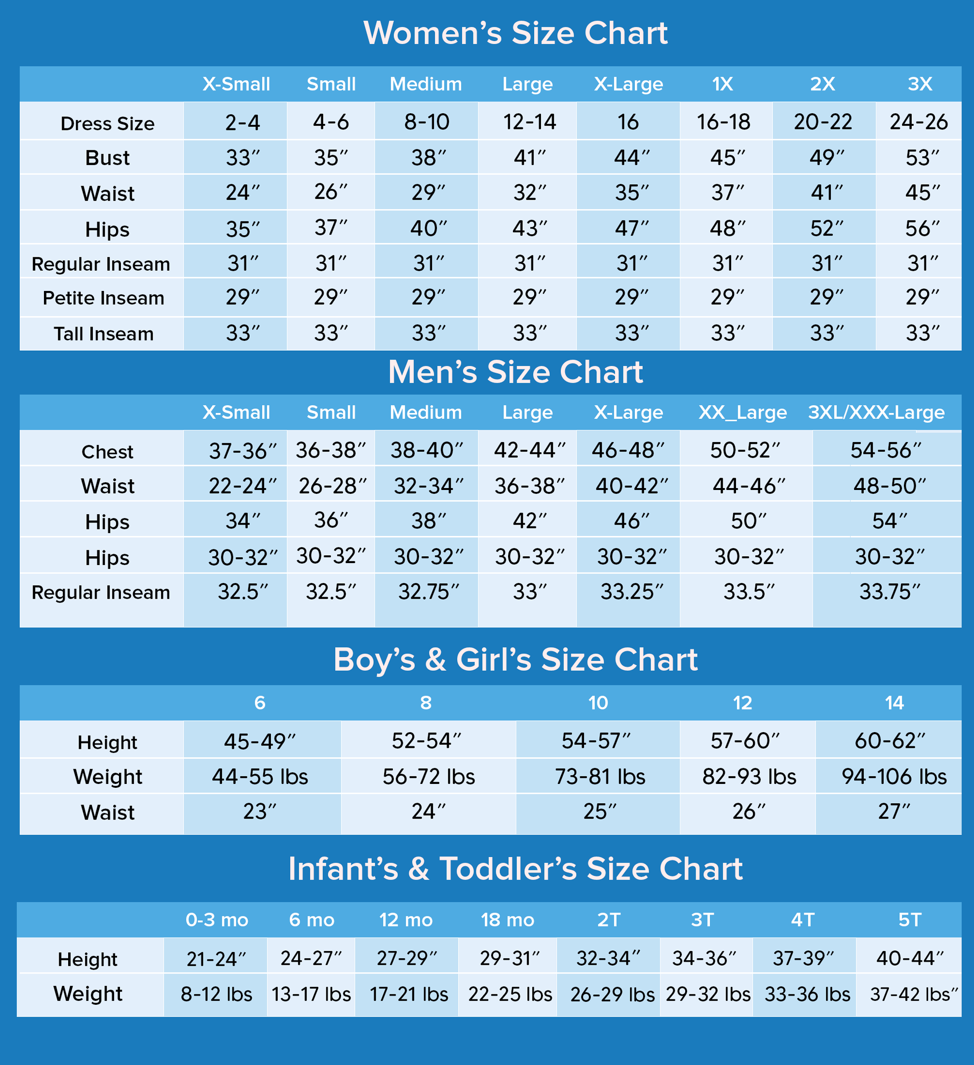 Comfortable, relaxed fit. Check our size chart for the perfect fit for every family member.