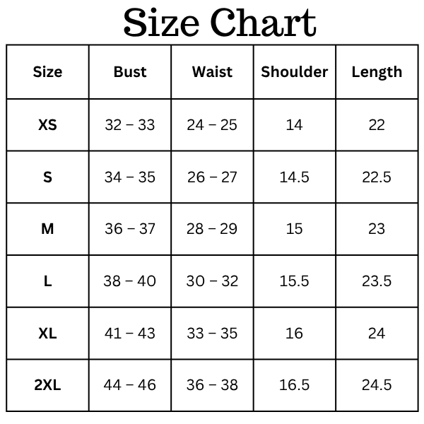 Size Chart(inches):