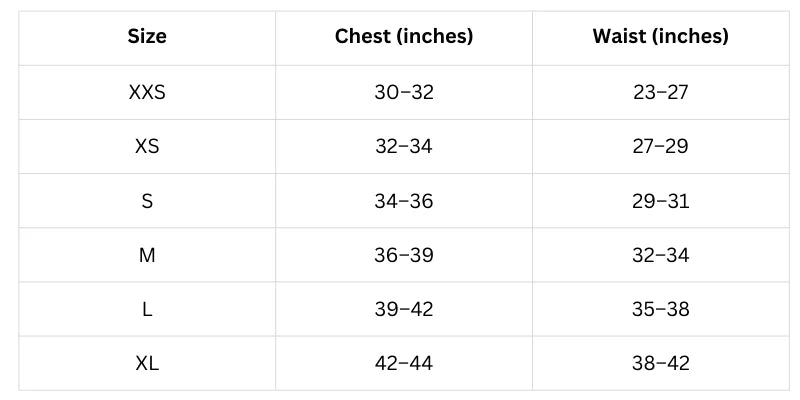 Size Chart (Inches):