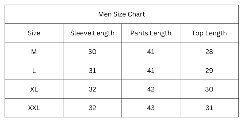 Size Chart (Inches):