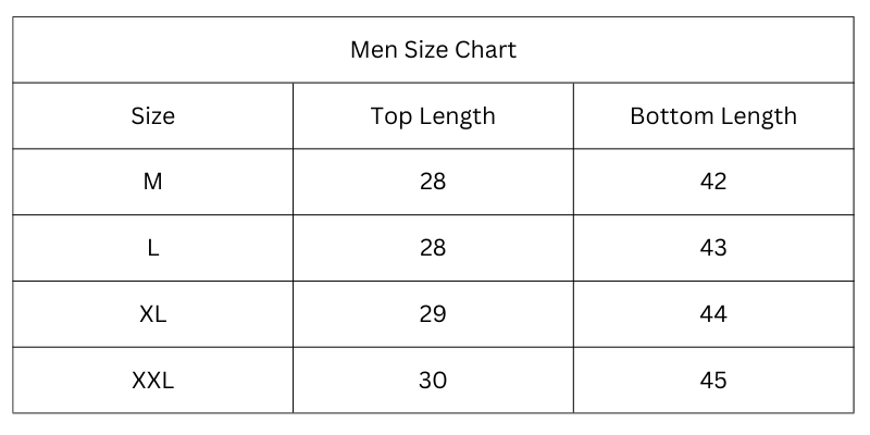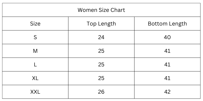 Size Chart (Inches):