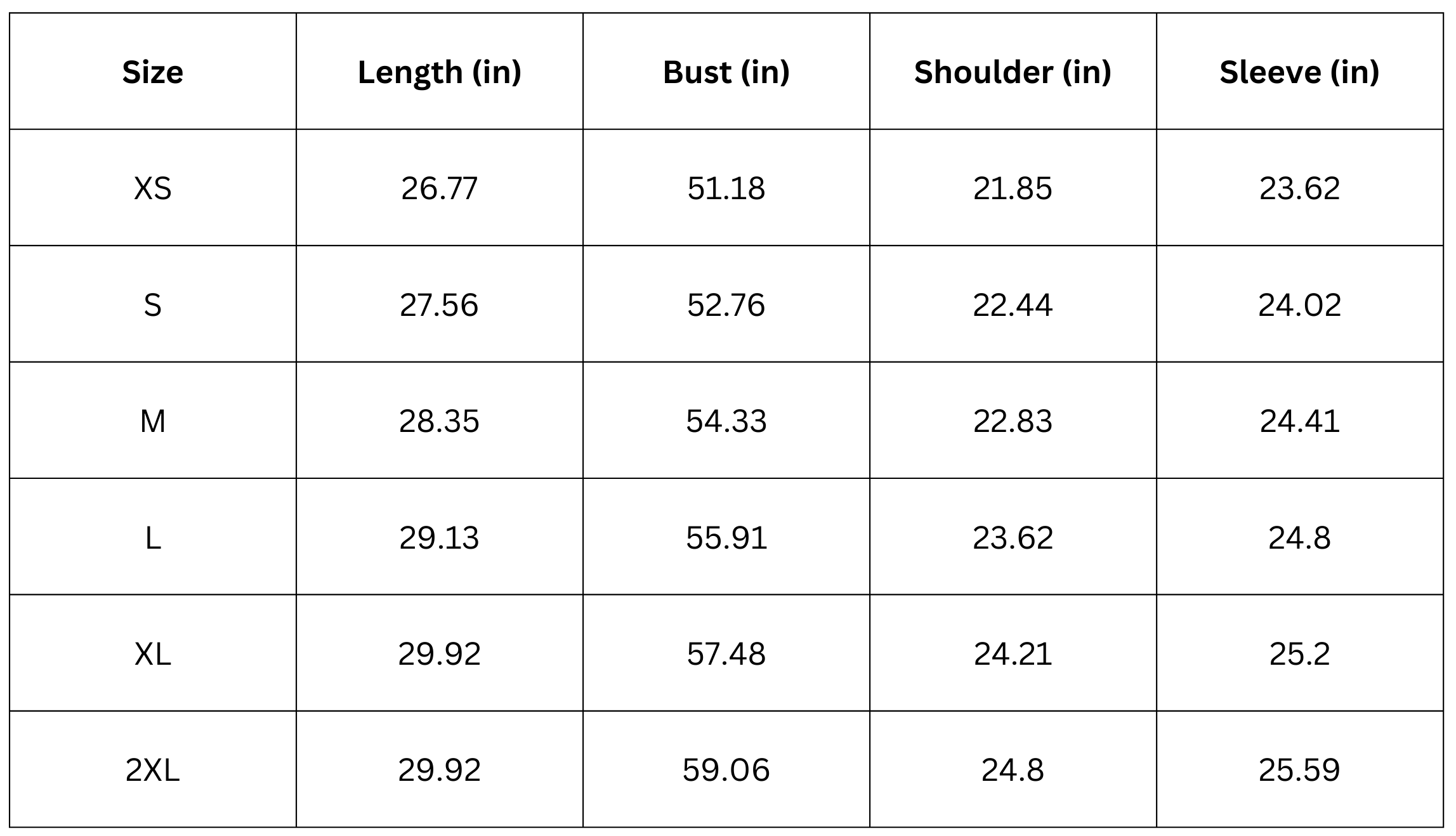Size Chart: ( Inches )