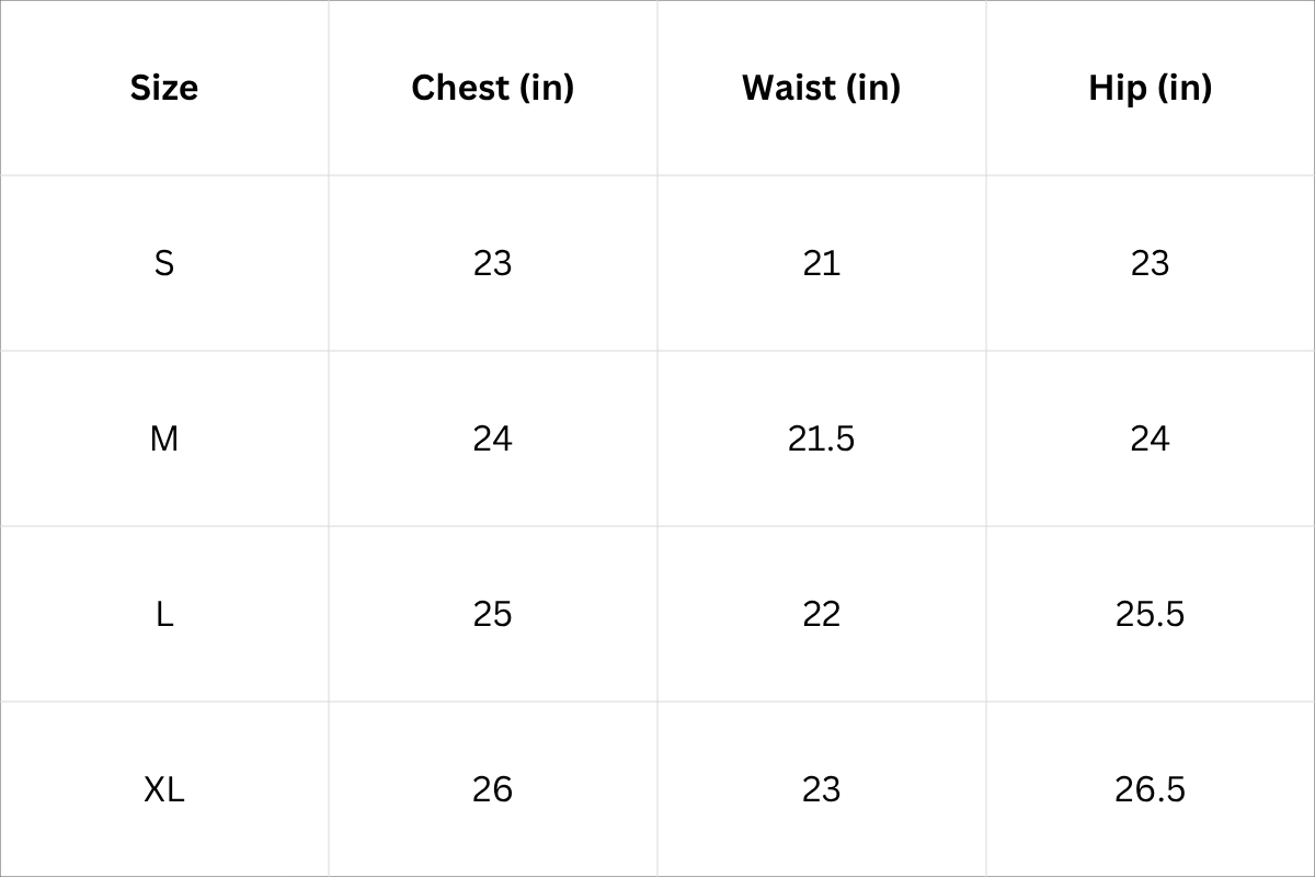 Size Chart (Inches):
