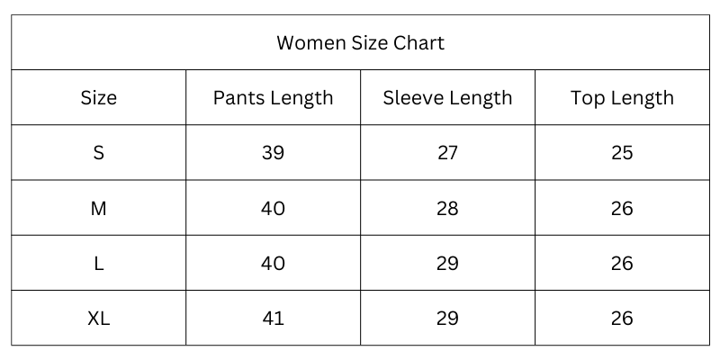 Size Chart (Inches):