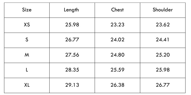 Size Chart (Inches)